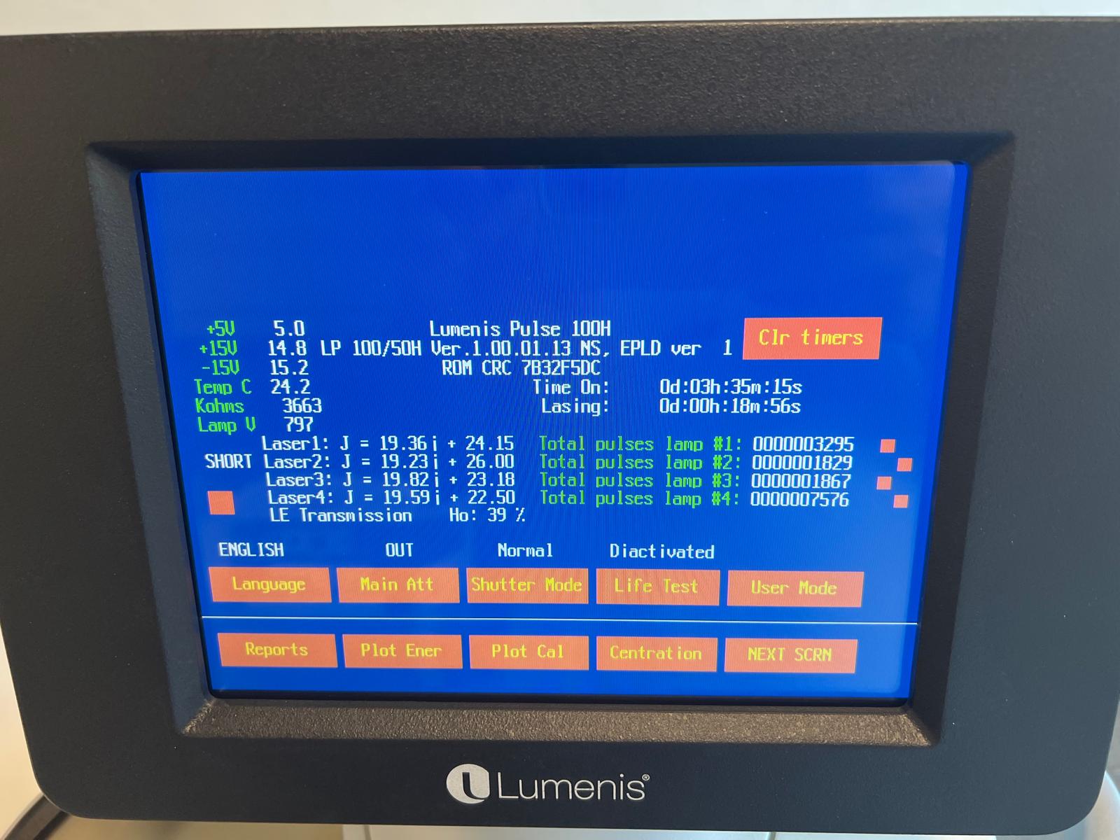 Lumenis Pulse 100H generates high energy per pulse of up to 3.5J and a high repetition